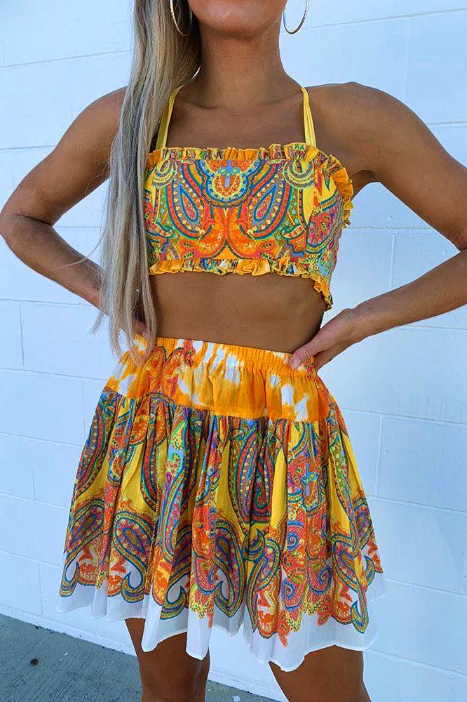 The Carousel Skirt is made from a soft yellow cotton, and features an incredible muti-coloured paisley print. With an elasticised waist band for the perfect fit, you cant go wrong with a BTL classic mini skirt!